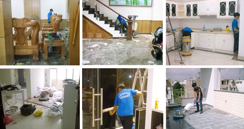 Quy trình làm việc được xây dựng bài bản, bắt đầu từ việc thu dọn rác thải cồng kềnh, đến xử lý các vết bám cứng đầu như xi măng, sơn trên sàn và cửa kính. Đội ngũ nhân viên được đào tạo bài bản, sử dụng máy móc chuyên dụng như máy chà sàn, máy hút bụi công nghiệp và hóa chất tẩy rửa an toàn. Điều này đảm bảo mọi ngóc ngách, từ hệ thống điện âm tường đến các khe gạch, đều được làm sạch triệt để mà không gây hư hại cho bề mặt vật liệu.